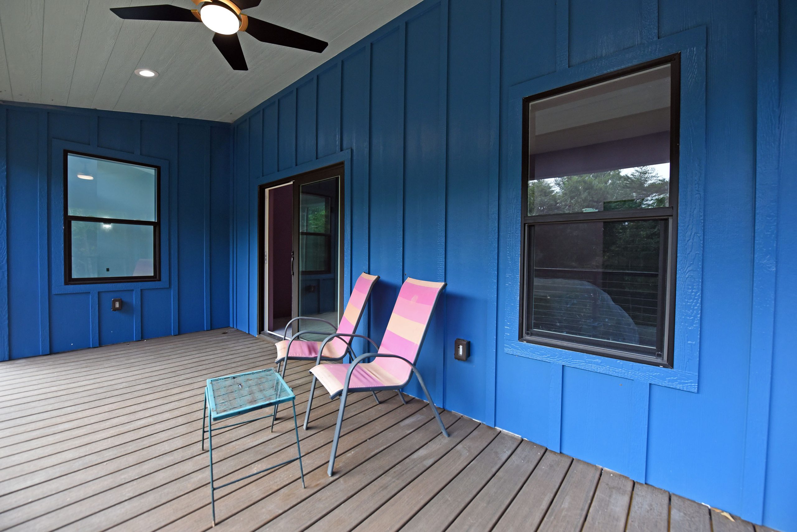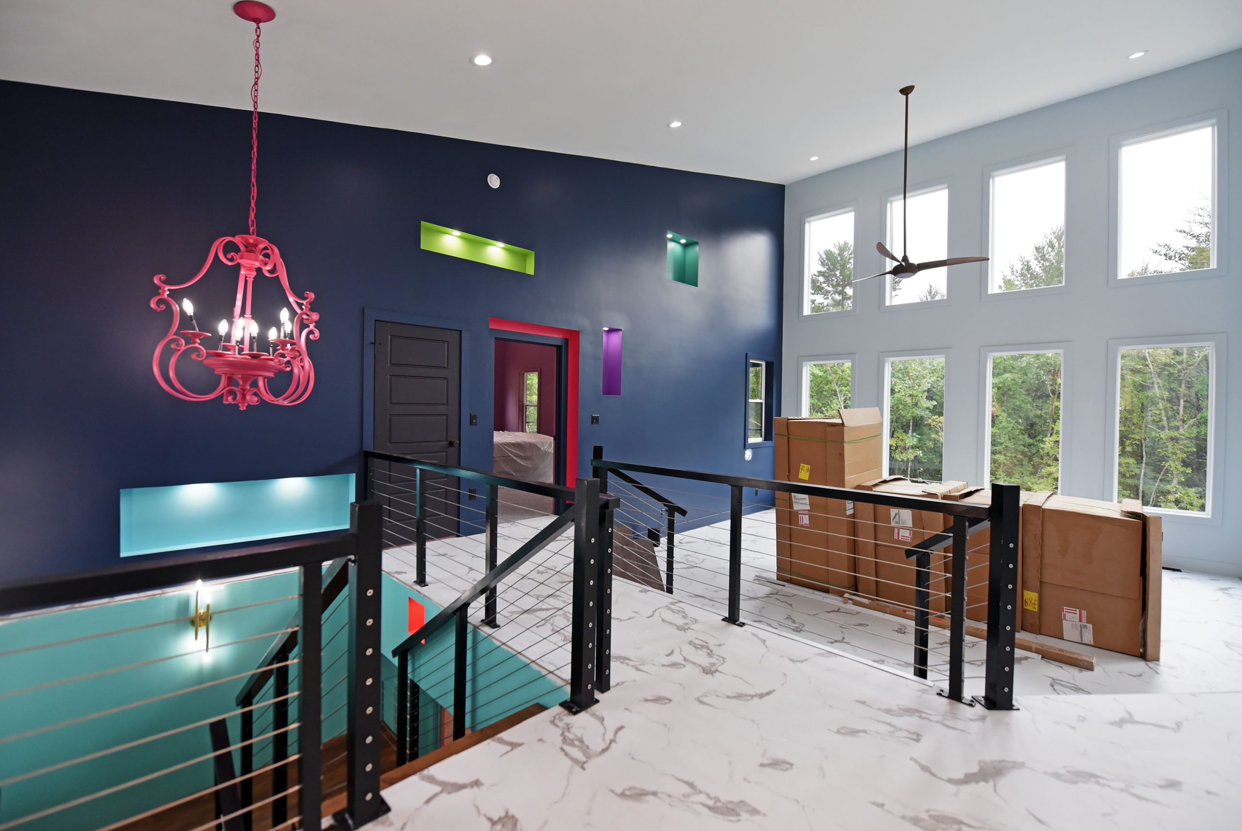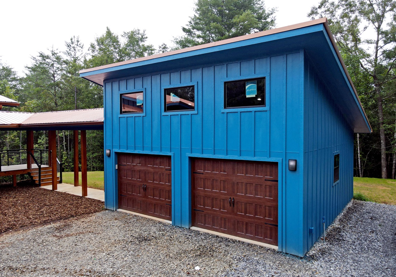 The exterior of this home is just as impressive, featuring low-maintenance features like metal roofing, Trex decking, and board & batten siding. The powder-coated aluminum railings, accented with stainless steel cables, provide a sleek and contemporary touch.