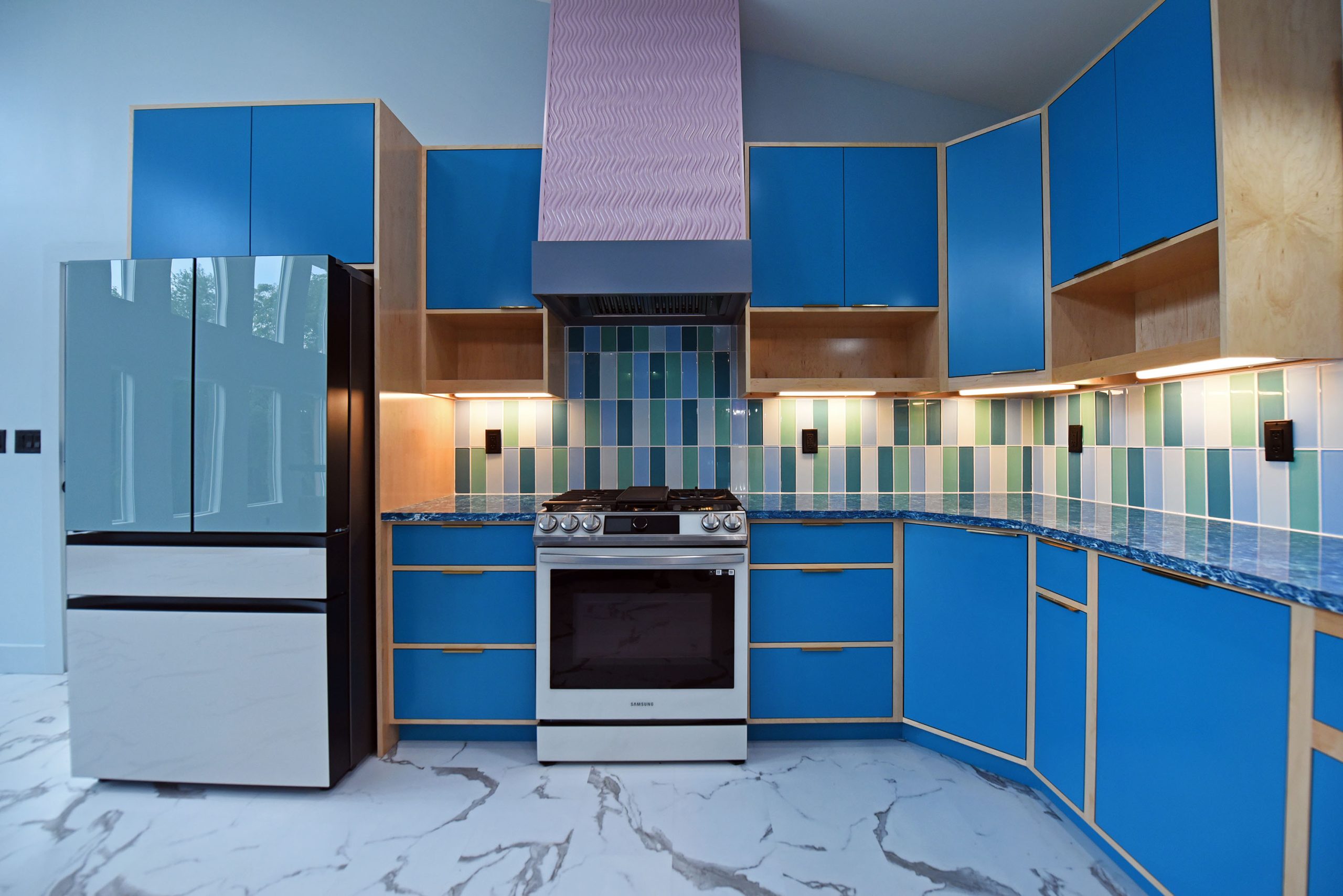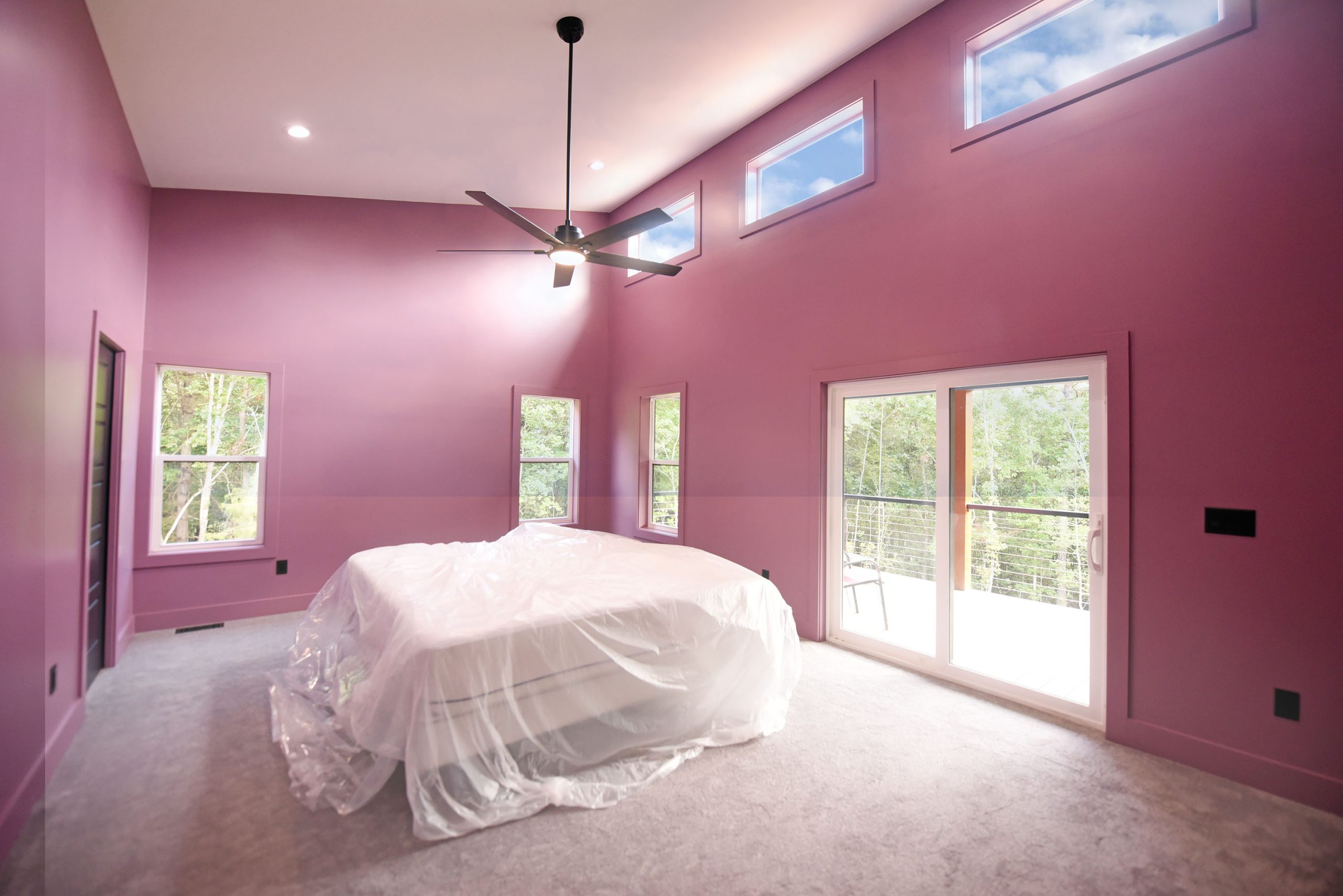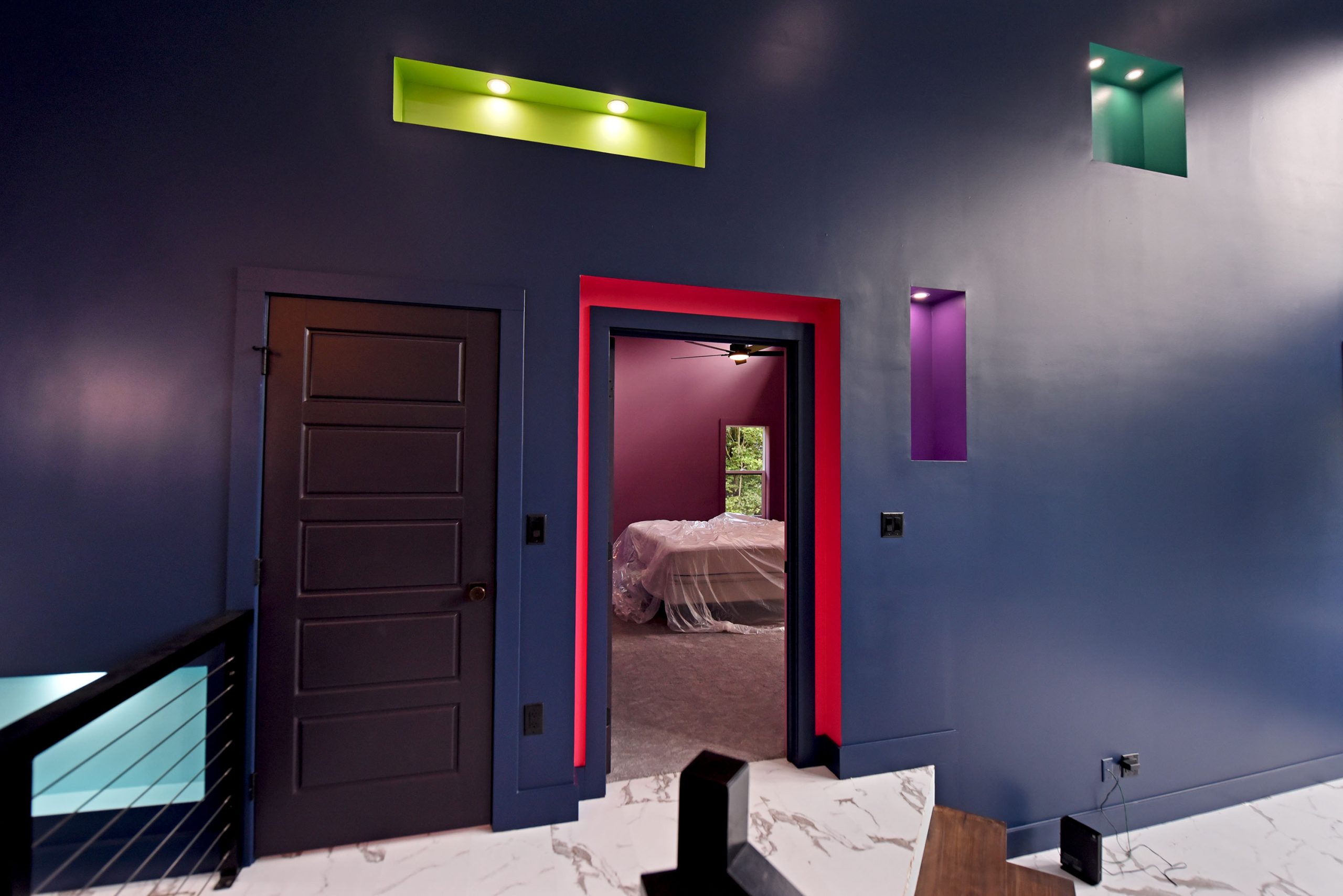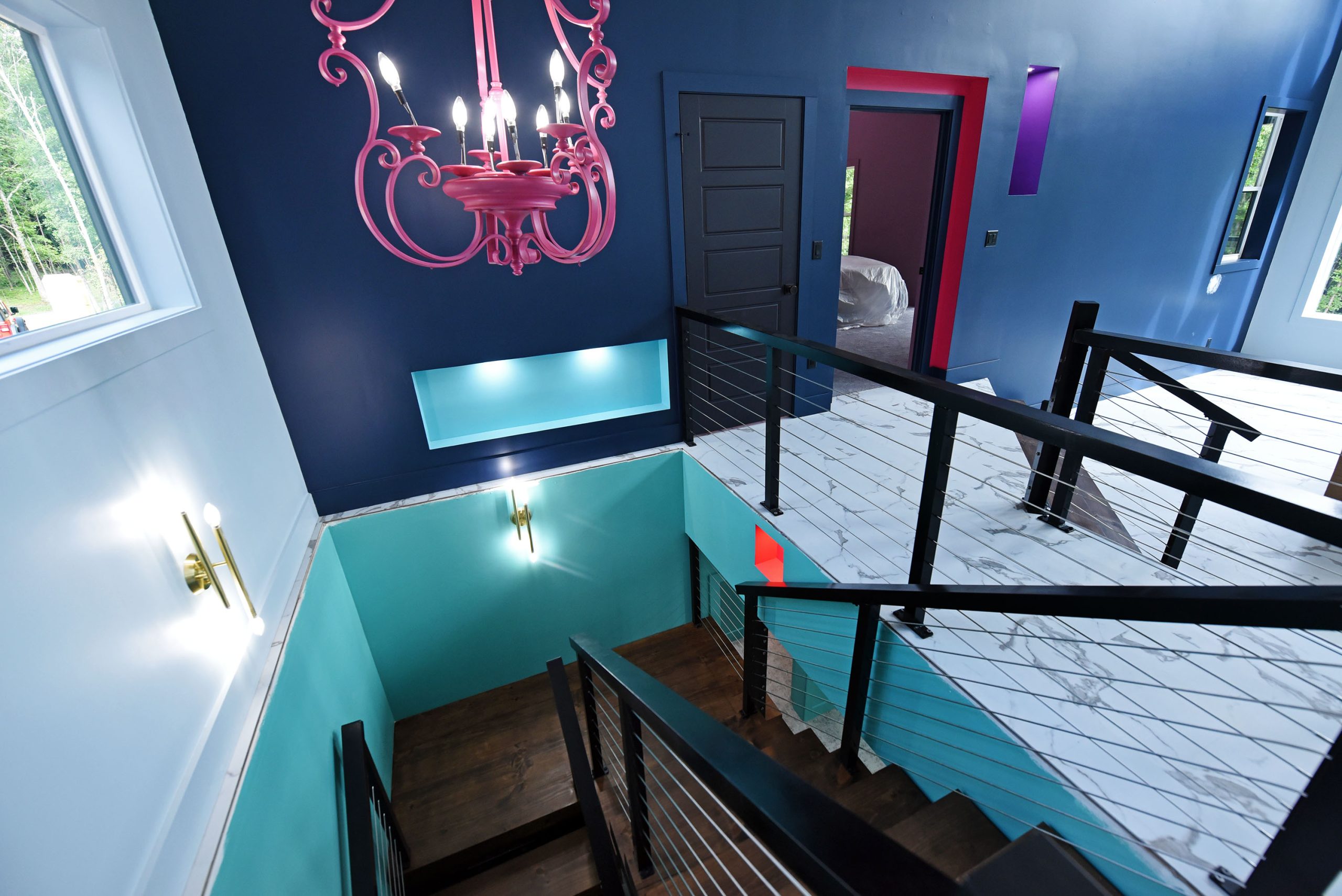 The exterior of this home is just as impressive, featuring low-maintenance features like metal roofing, Trex decking, and board & batten siding. The powder-coated aluminum railings, accented with stainless steel cables, provide a sleek and contemporary touch.