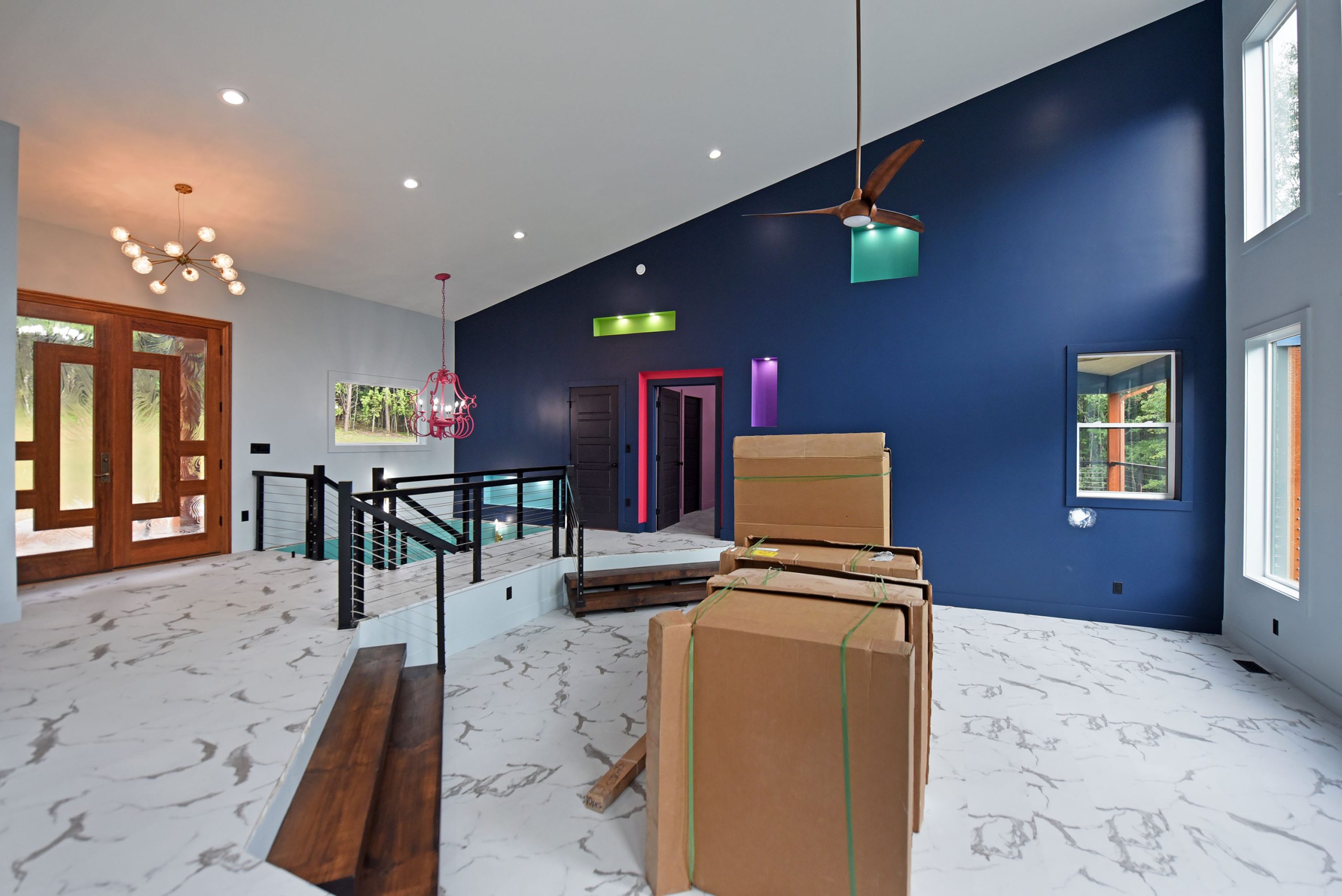 This unique and stunning 3,100 square foot home boasts 3 spacious bedrooms 2.5 bathrooms. As you step inside, you’ll immediately notice the exquisite LVT and LVP flooring, creating an inviting and modern atmosphere. The wood and steel floating stairs add a touch of elegance and uniqueness to the interior design.